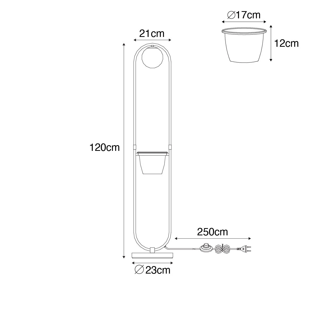 | Gesamt | Tiefe 23 cm – Höhe 120 cm – Länge 21 cm |