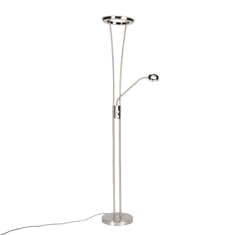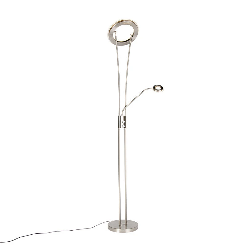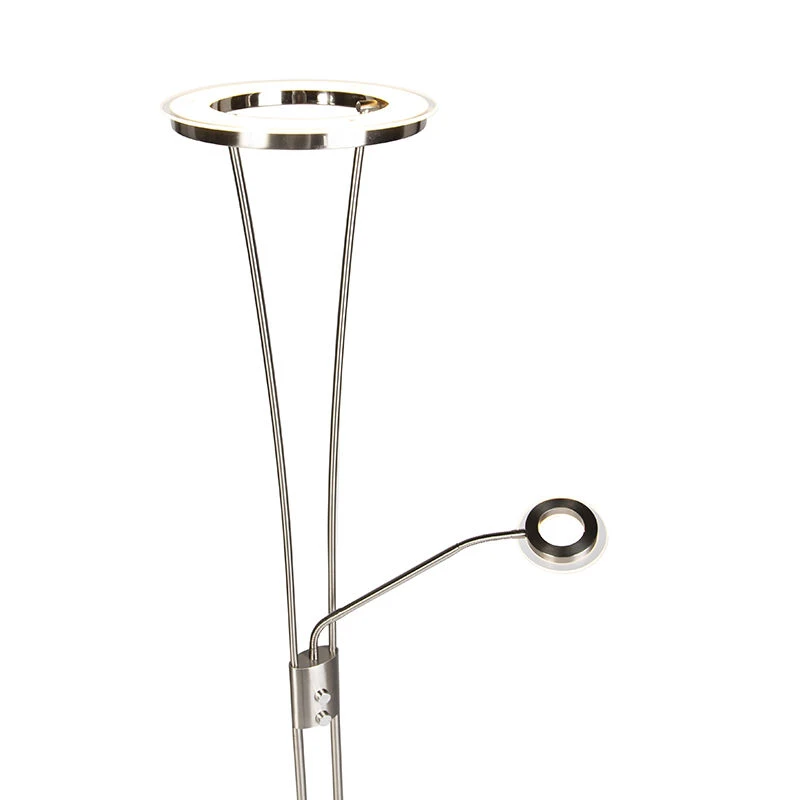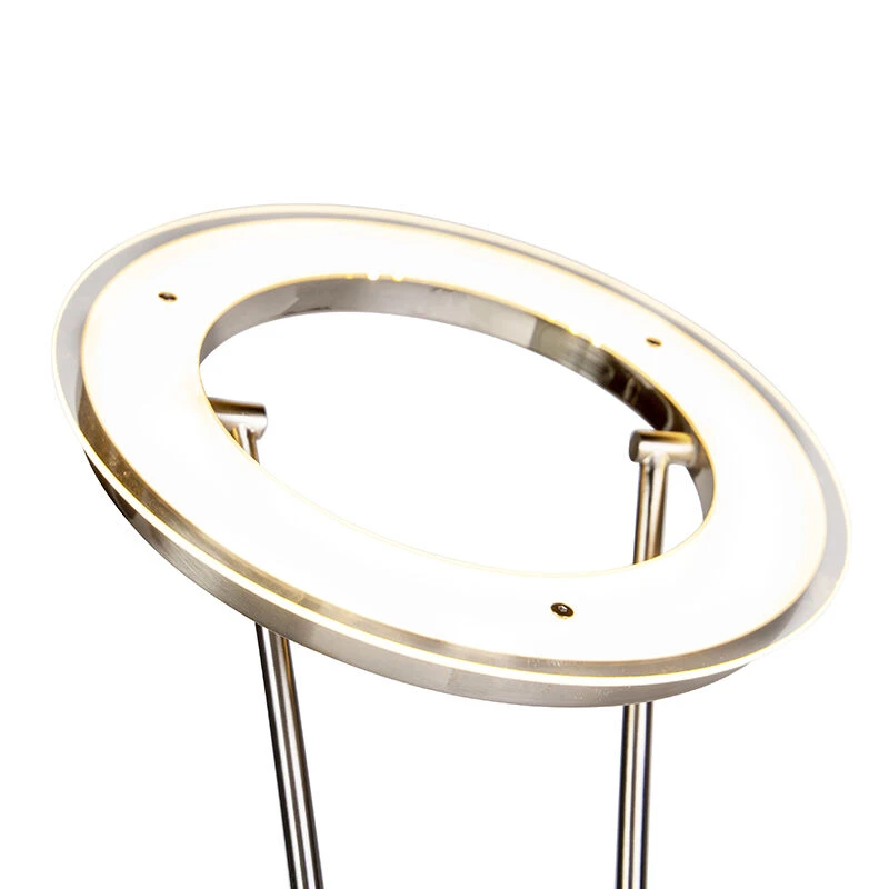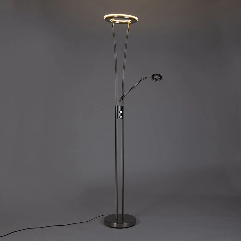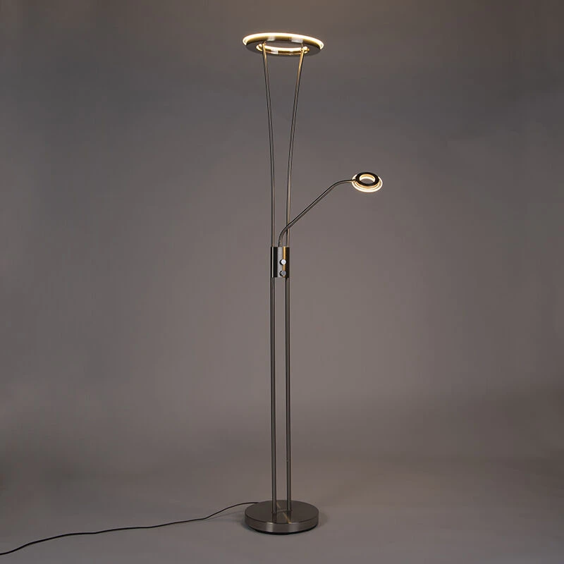 Die Stehleuchte hat einen Uplighter (Durchmesser 30 cm) inklusive LED (in die Leuchte integriert). Diese LED hat eine Lichtleistung von 3000 Kelvin und 1800 Lumen. Der Lesearm hat 400 Lumen und 3000 Kelvin.